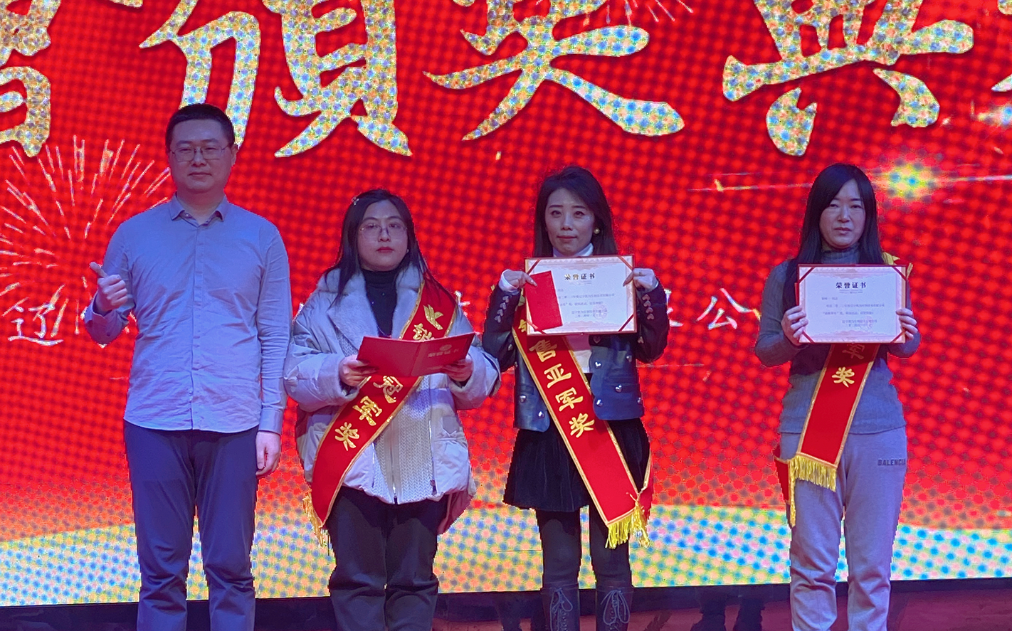 周瑜獲得集團(tuán)事業(yè)部2023年度超目標(biāo)獎、集團(tuán)事業(yè)部年度銷售冠軍獎;李榮久獲得集團(tuán)事業(yè)部2023年度超目標(biāo)獎;邵丹獲得集團(tuán)事業(yè)部2023年度超目標(biāo)獎。嘉賓李占忠先生、總經(jīng)理王鐵良先生為獲獎?wù)哳C獎。